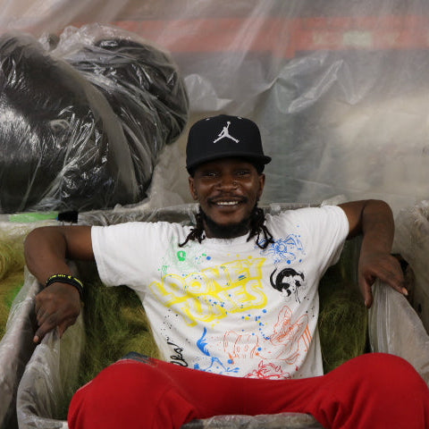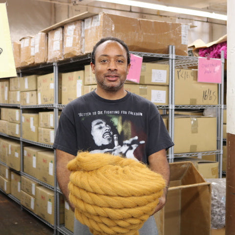 Adiellsy is a part of our Pre-Production team, carding all the colorful fibers. He has 17 ½ years of experience in retail. Adiellsy’s favorite things to do is draw and listen to music. He also creates custom sneakers and writes poetry, when not spending time with his daughter.