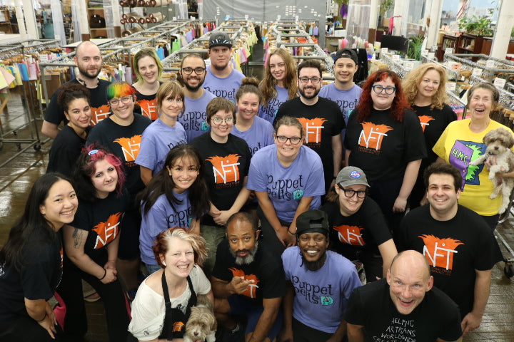 Zoë is a far-out textile and clothing artist who is in NFT’s Creative Production Department through thick and thin…hair! After graduating from the Maine College of Art & Design in 2019 she found her place at NFT and continued to work on her personal fashion & textile work inspired by texture, puppets, pop culture & an overall resplendence. She currently works with her two sisters on her brand Eternally Weird (@eternally_weird_) creating gnarly fashion, photos & more! In her down time, she enjoys puppet heavy movies, a good bagel, and a warm pug.